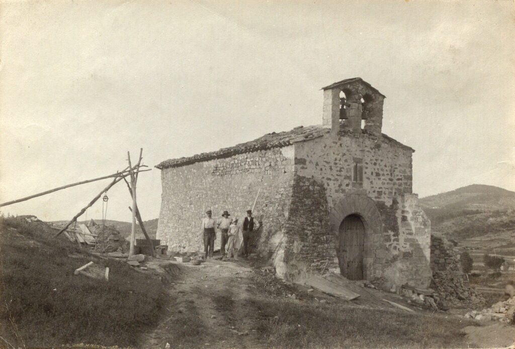 Fotografia més antiga coneguda de Sant Romà. Autoria desconeguda. Col·lecció del Catàleg Monumental del SCCM (CAT Arxiu General de la Diputació de Barcelona R.198008).