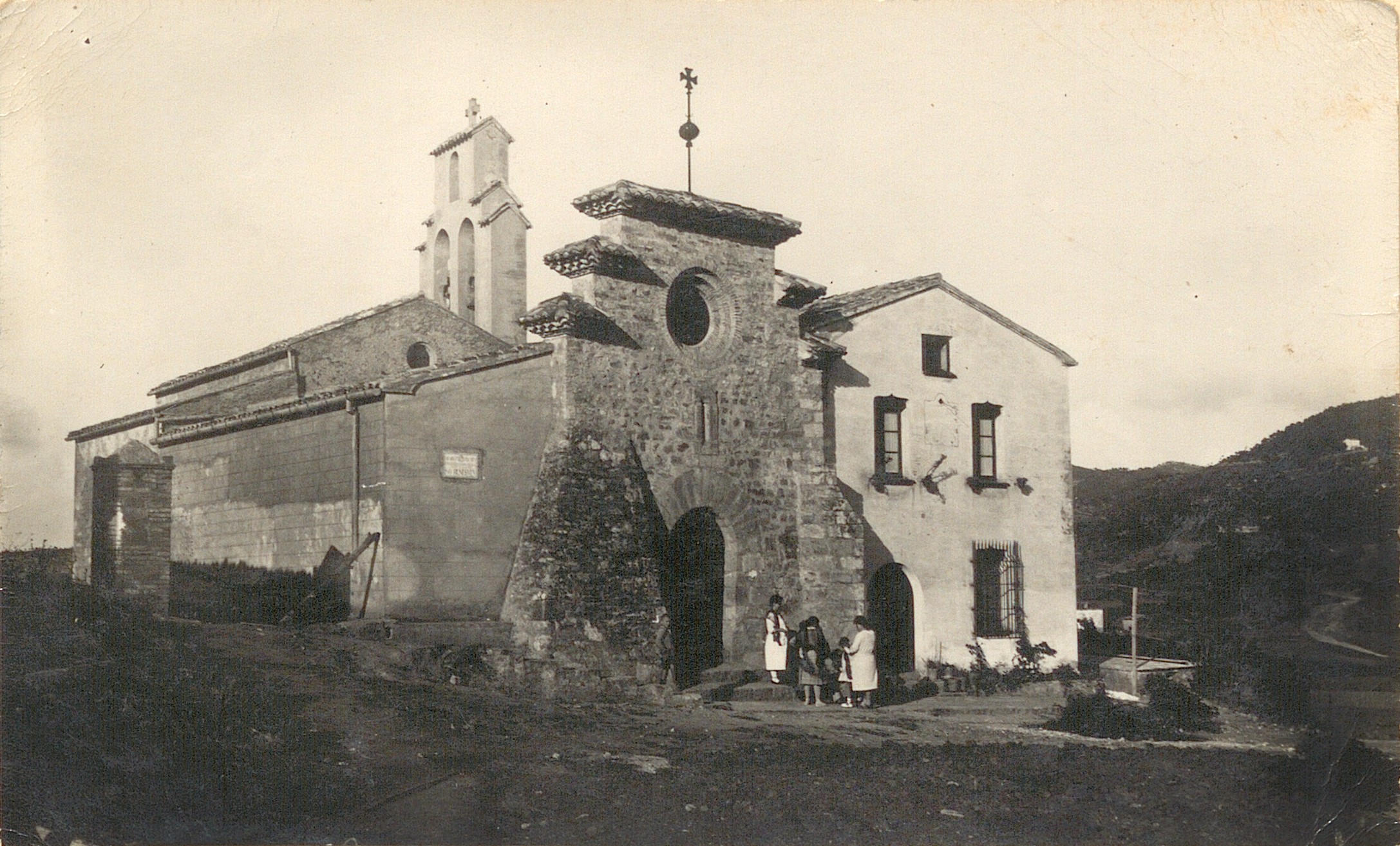 Església de Sant Romà de Santa Maria de Miralles, c. 1925. Autoria desconeguda. Col·lecció del Catàleg Monumental del SCCM (CAT Arxiu General de la Diputació de Barcelona R.198010)