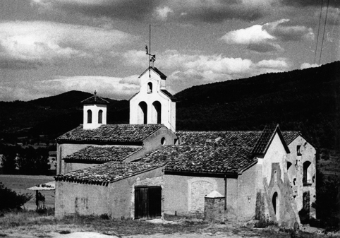 Aspecte exterior de l’església de Sant Romà, 1974. Autor: Josep Bou Farreras. Font: Arxiu Comarcal de l’Anoia (AFMI06804).